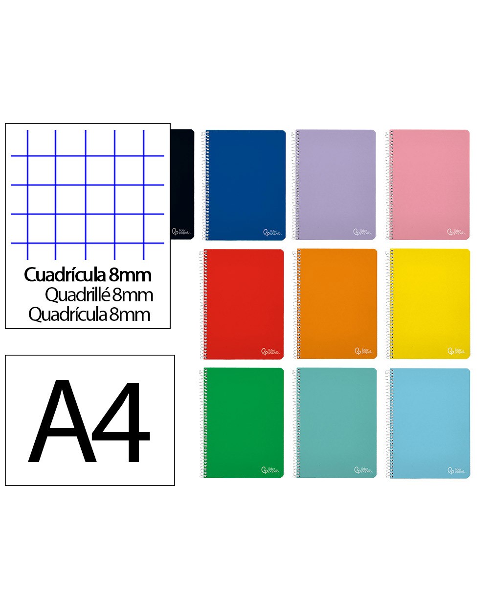 Cuaderno espiral liderpapel din a4 witty tapa dura 80h 90gr cuadro 8mm con margen colores surtidos - 171919