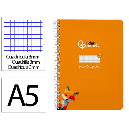 Cuaderno espiral liderpapel cuarto pautaguia tapa dura 80h 90 gr cuadro pautado 3mm color naranja - 171743