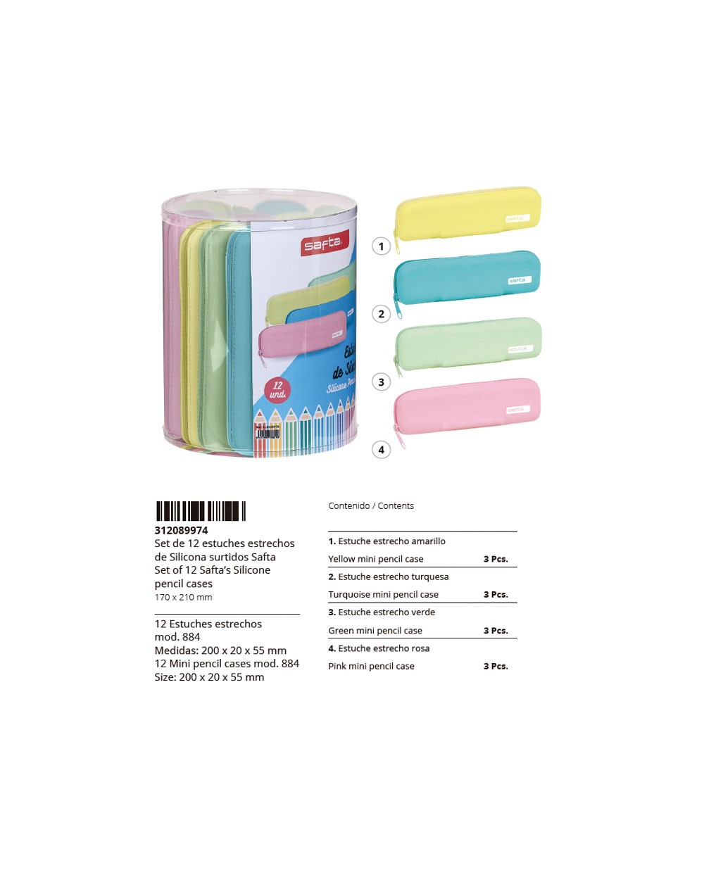 Set 12 portatodos estrechos silicona surtidos sets y expositor portatodos silicona safta 170x210 mm - 223152